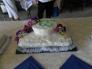 On August 7th, day 11 of our trip, my Great Aunt and Uncle celebrated their 65th Wedding Anniversary. Their actual anniversary won’t be until November 20th, but because we were there they moved the celebration up a few months. Several relatives came to share in the celebration. One of my Grandma’s brothers had five children and four came by to see her and my great aunt and uncle over the weekend. All four of my Great Aunt and Uncle’s children were there and most of their grandchildren and great grandchildren. We met several of my Great Aunt and Uncle’s friends, Grandma knew a lot of them, as well.
