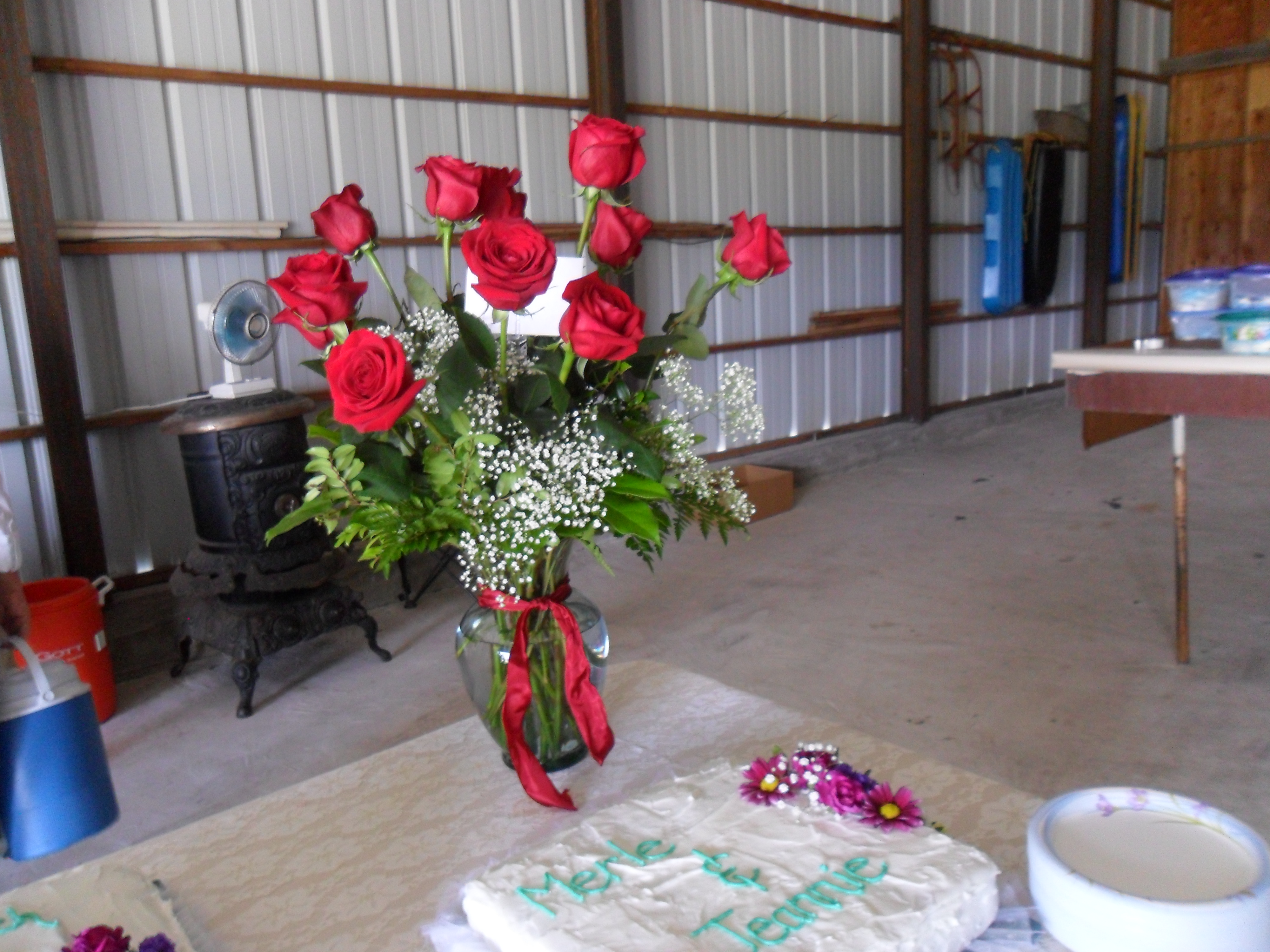 The cake was delicious. I usually don’t eat icing, but this was melt in your mouth, not too sweet, wonderful. Uncle M.gave Aunt E a dozen roses, a tradition that started with their 50th wedding anniversary. After a come and go reception we had a potluck dinner that included family and close friends. Daddy blessed the food, the honored couple, and all those in attendance. We toasted the couple with wine made from plums from Uncle M’s orchard. There is a man who buys all the plums from Uncle M and then makes wine at a local winery. Well, I assume it is local, it is in Polebridge, Montana. It is called Merabelle Plum Wine. The food was abundant and all delicious.